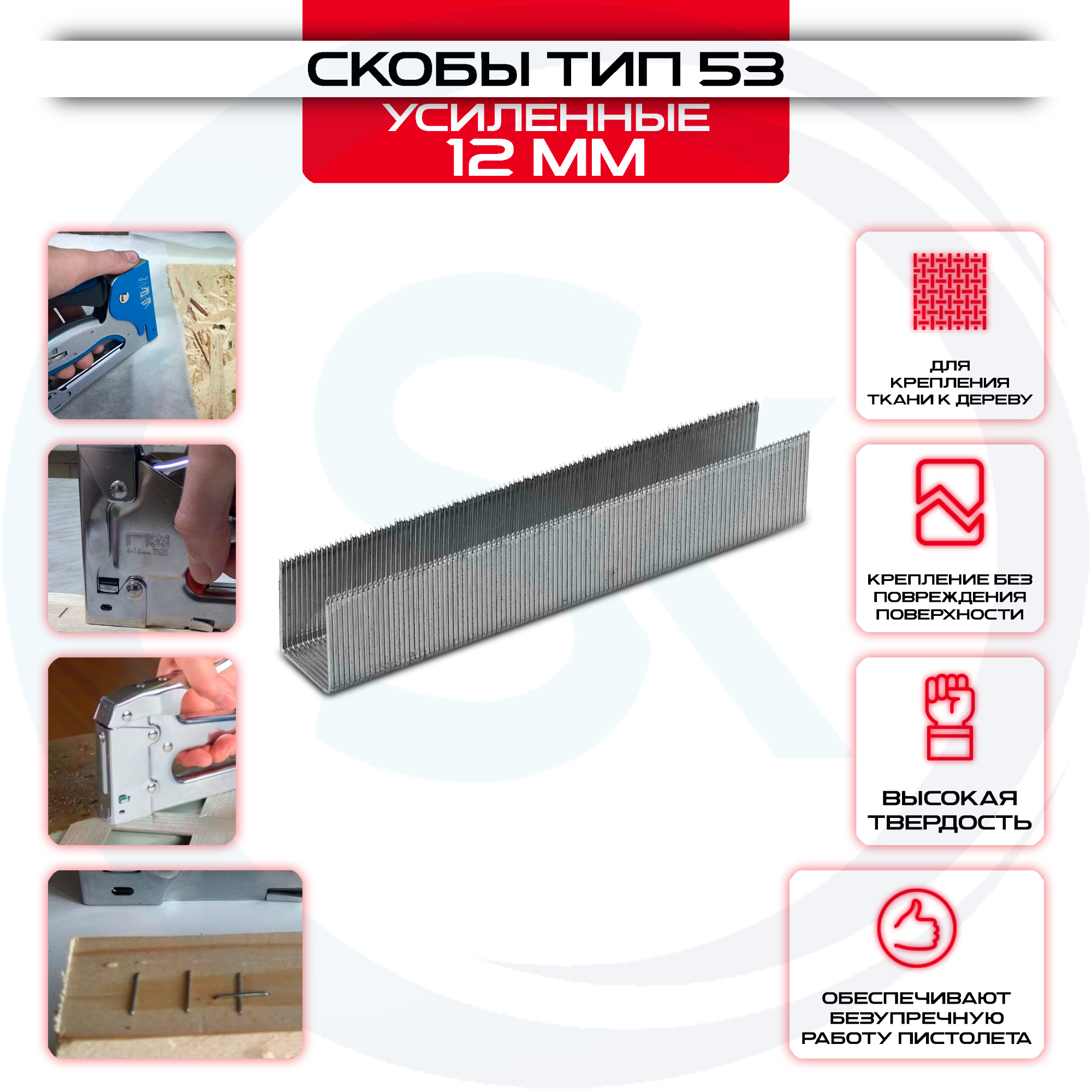Скобы, 12 мм, для мебельного степлера, усиленные, тип 53, 1000 шт Gross — это лучший инструмент для идеального ремонта или профессиональных работ. Он произведен из прочного материала, что обеспечивает надежность и долговечность.