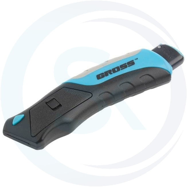 Профессиональный нож ремонтно-монтажный Gross с трехкомпонентной рукояткой и кнопочным автовыбросом. Длина лезвия составляет 175 мм. В комплекте идут 5 запасных лезвий.