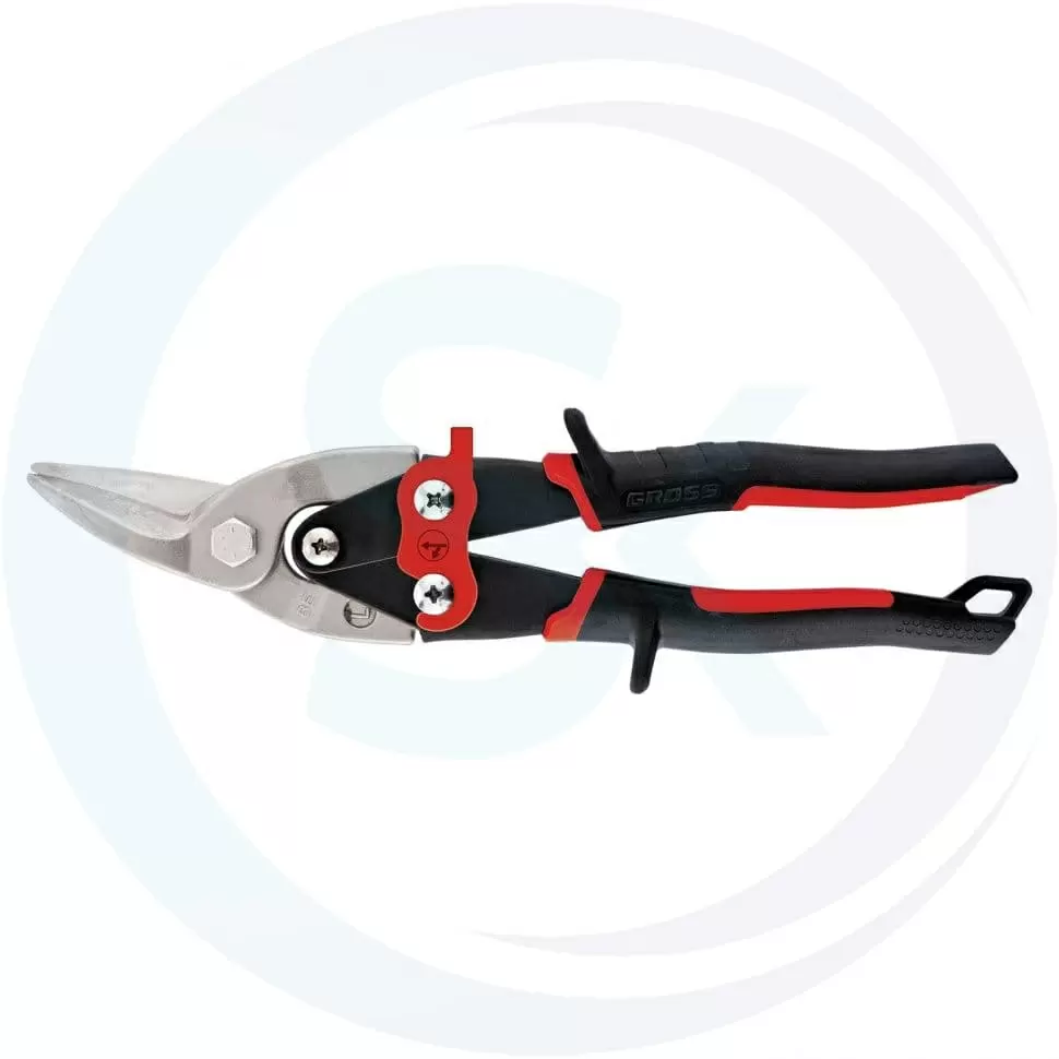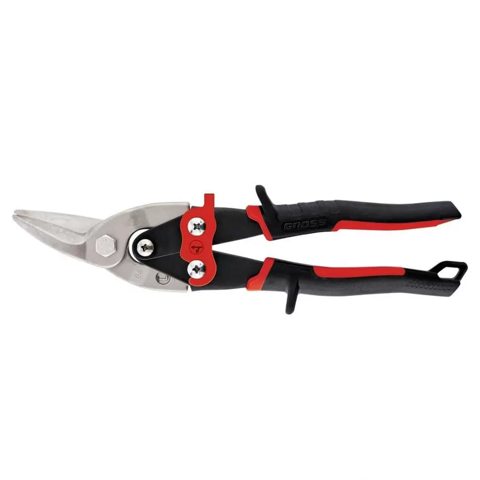 Ножницы по металлу "Piranha", 250 мм, прямой и левый рез, сталь СrMo, двухкомпонентные рукоятки Gross подходит для профессионального использования в строительных, ремонтных работах и других задачах, где требуется точность и высокая работоспособность.