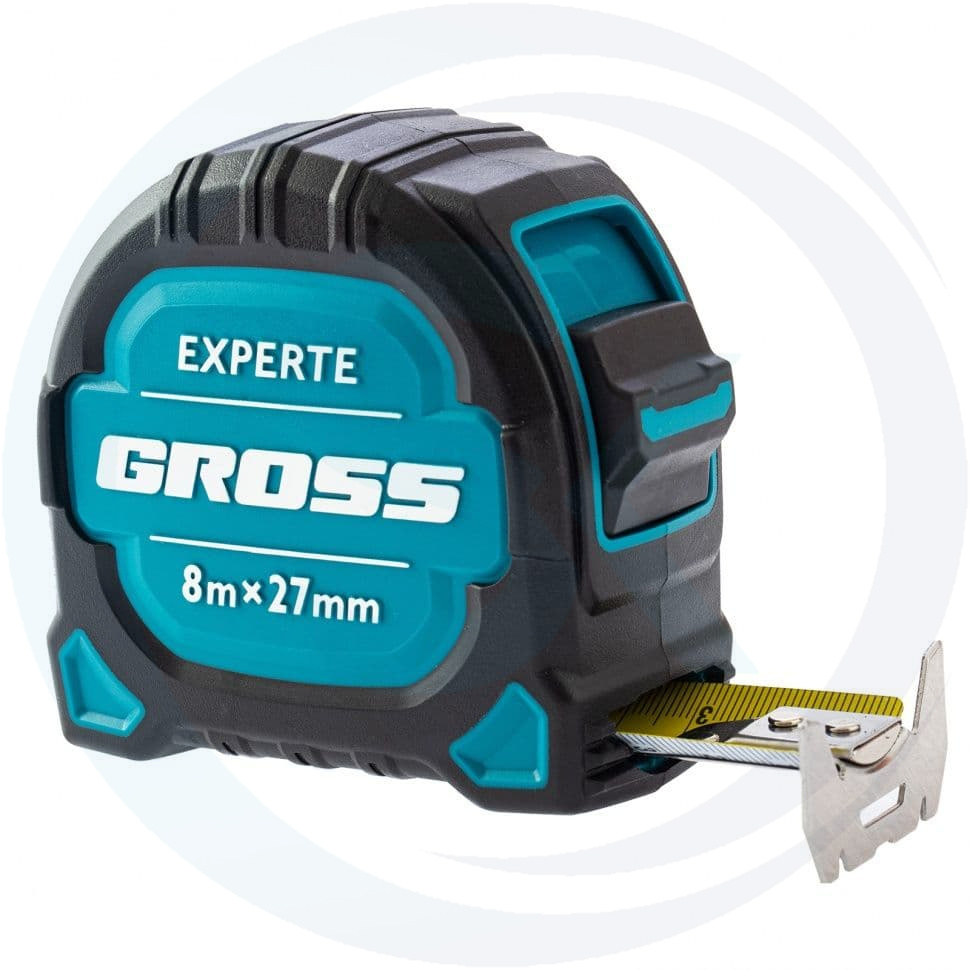 Рулетка Experte, 8 м x 27 мм, двухкомпонентный корпус, магнит, двухсторонняя разметка, нейлон Gross
