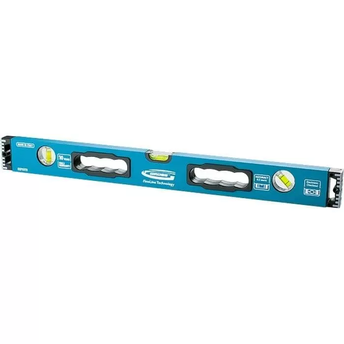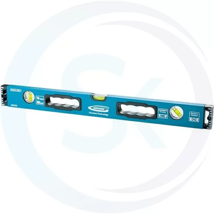Усиленный алюминиевый уровень Gross длиной 1200 мм с ударопрочными заглушками и рукоятками. Идеально подходит для точного измерения и выравнивания поверхностей. Оборудован 3 глазками для удобства использования.