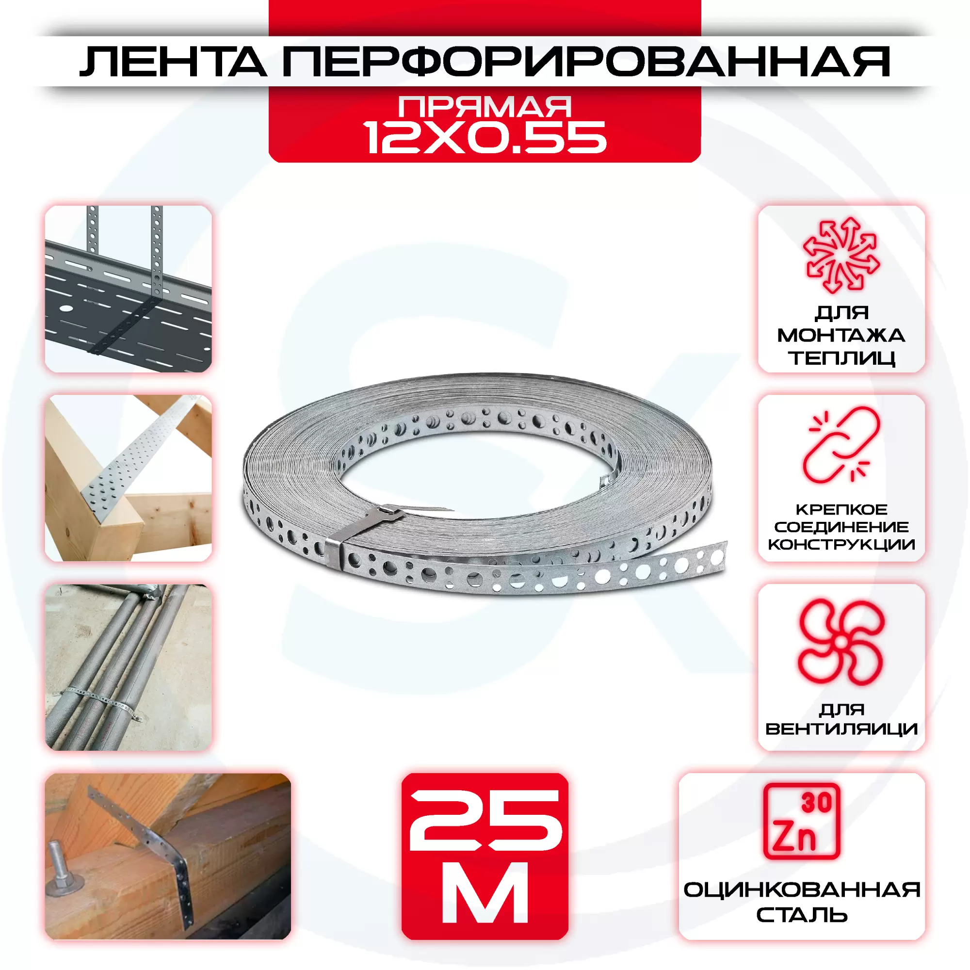 Лента прямая 12х0,55мм монтажная перфорированная LP_V, 25 метов