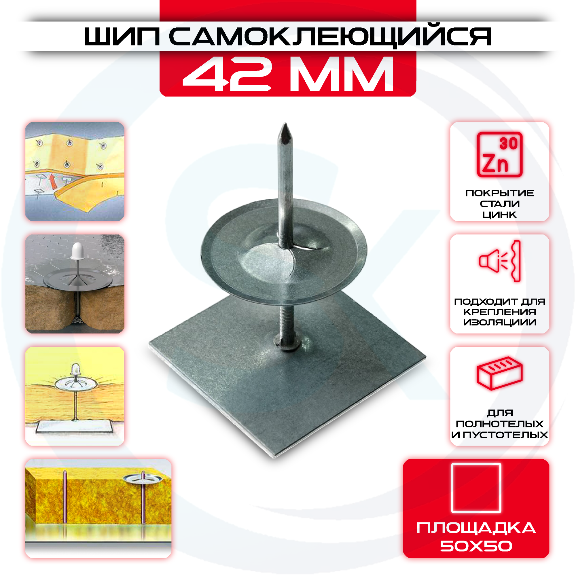 Шип самоклеющийся для крепления изоляции 42мм, площадка 50х50