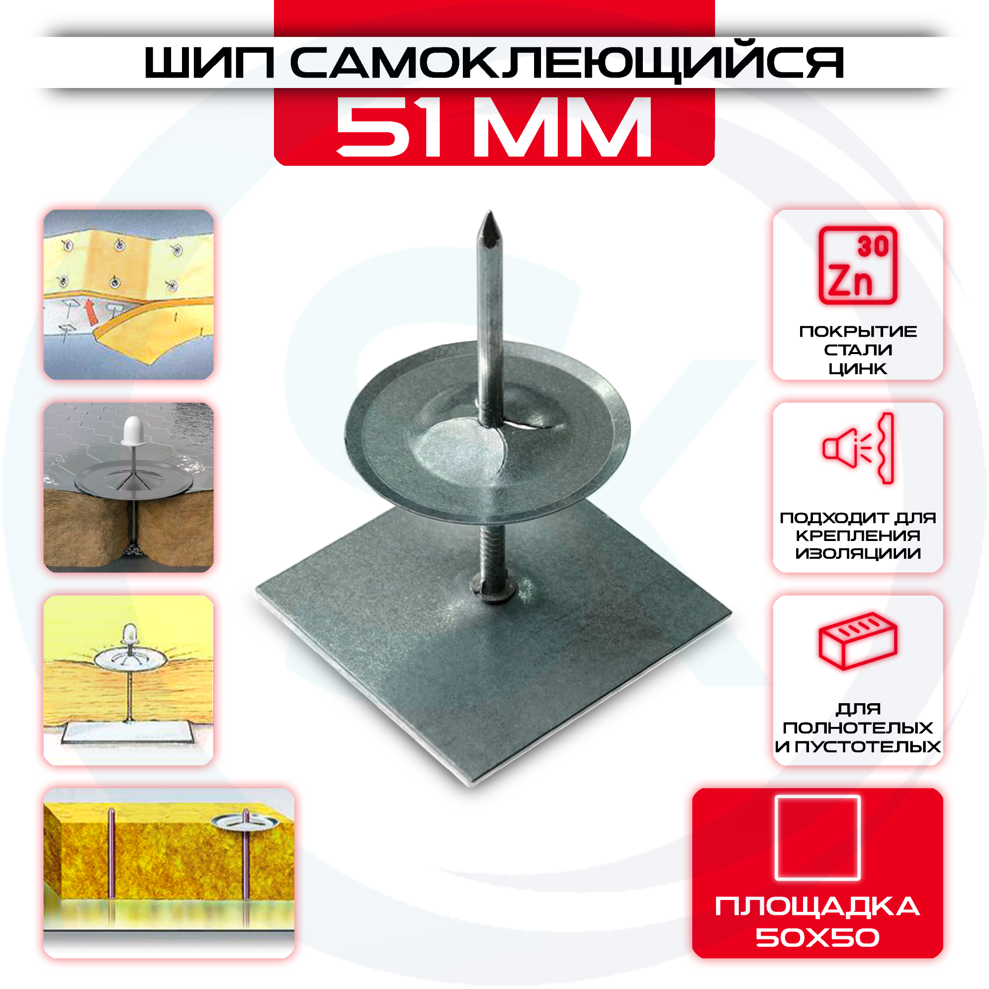 Шип самоклеющийся для крепления изоляции 51мм, площадка 50х50 - это надежный и удобный способ закрепления изоляции на поверхностях. Шип имеет длину 51 мм и оснащен самоклеящейся поверхностью, что позволяет легко и надежно закрепить его на нужном месте. Площадка шипа имеет размер 50х50 мм, обеспечивая прочное и стабильное крепление. Идеально подходит для работы с различными видами изоляции, в том числе теплоизоляцией, звукоизоляцией и другими. Шип обладает высокой прочностью и долговечностью, что гарантирует долгий срок службы продукта. Прост в использовании и установке, этот шип является незаменимым инструментом для всех, кто занимается монтажом и ремонтом с изоляцией.