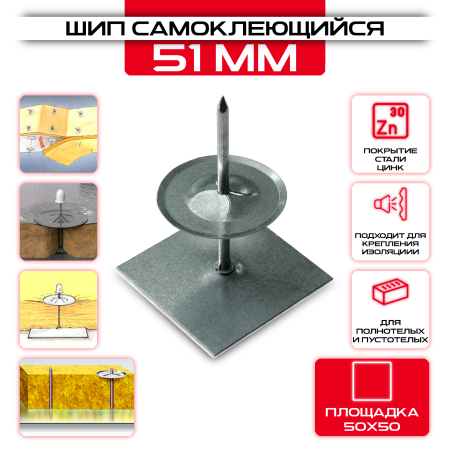Шип самоклеющийся для крепления изоляции 51мм, площадка 50х50