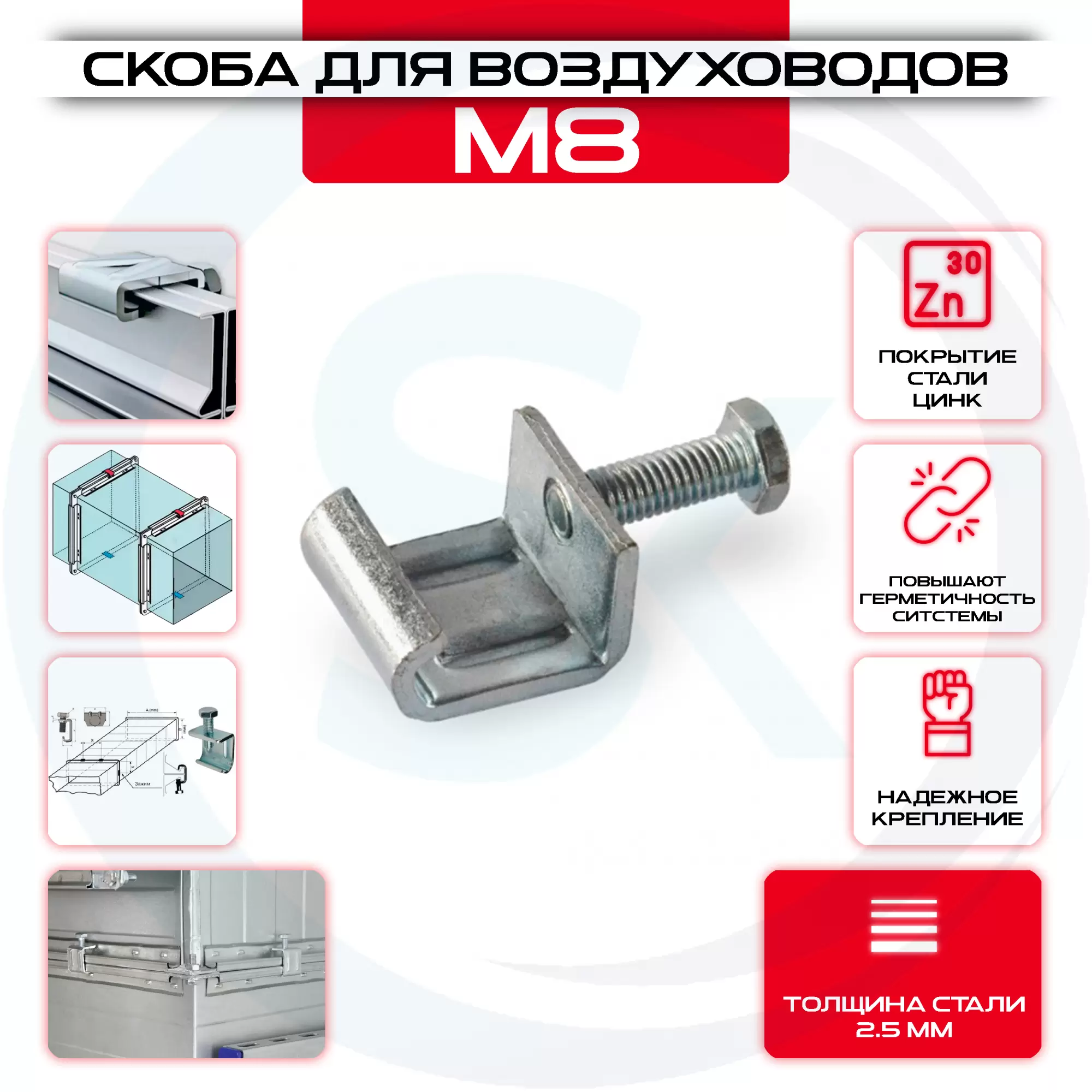 Скоба для стяжки фланцев воздуховодов SV М8, толщина 2,5мм