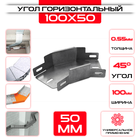 Угол горизонтальный 100x50мм, t=0,55мм, поворот 45°