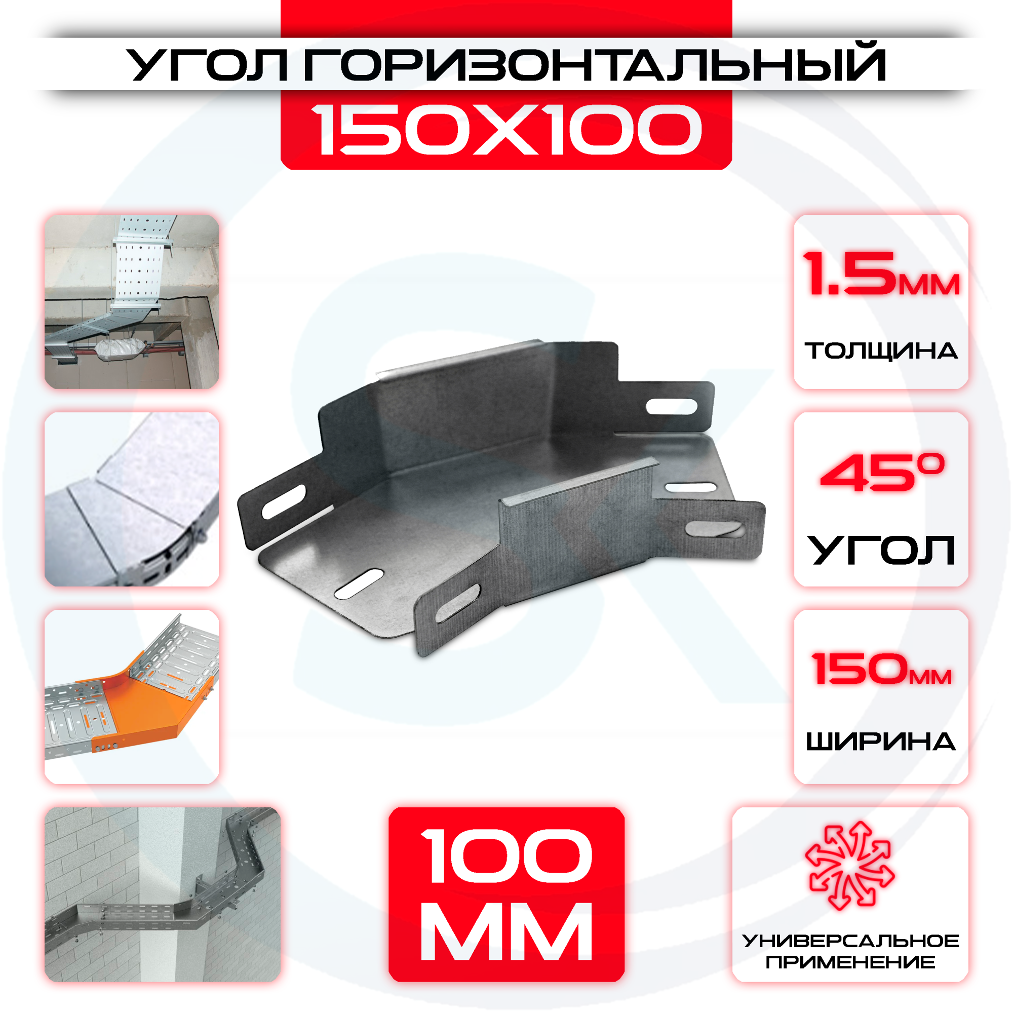 Угол горизонтальный 150x100мм, t=1,5мм, поворот 45°