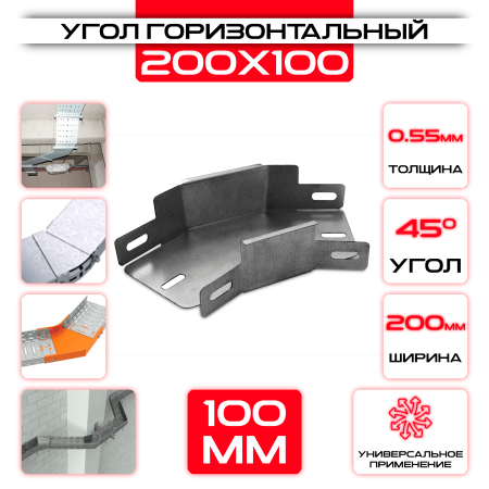 Угол горизонтальный 200x100мм, t=0,55мм, поворот 45°