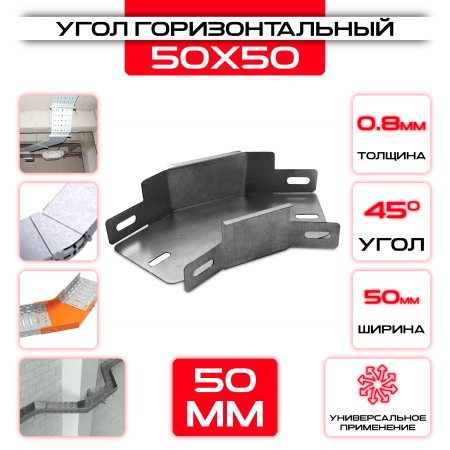Угол горизонтальный 50x50мм, t=0,8мм, поворот 45° - прочный и надежный элемент, который позволяет создавать качественные и надежные конструкции. Идеально подходит для использования в строительстве и ремонте.