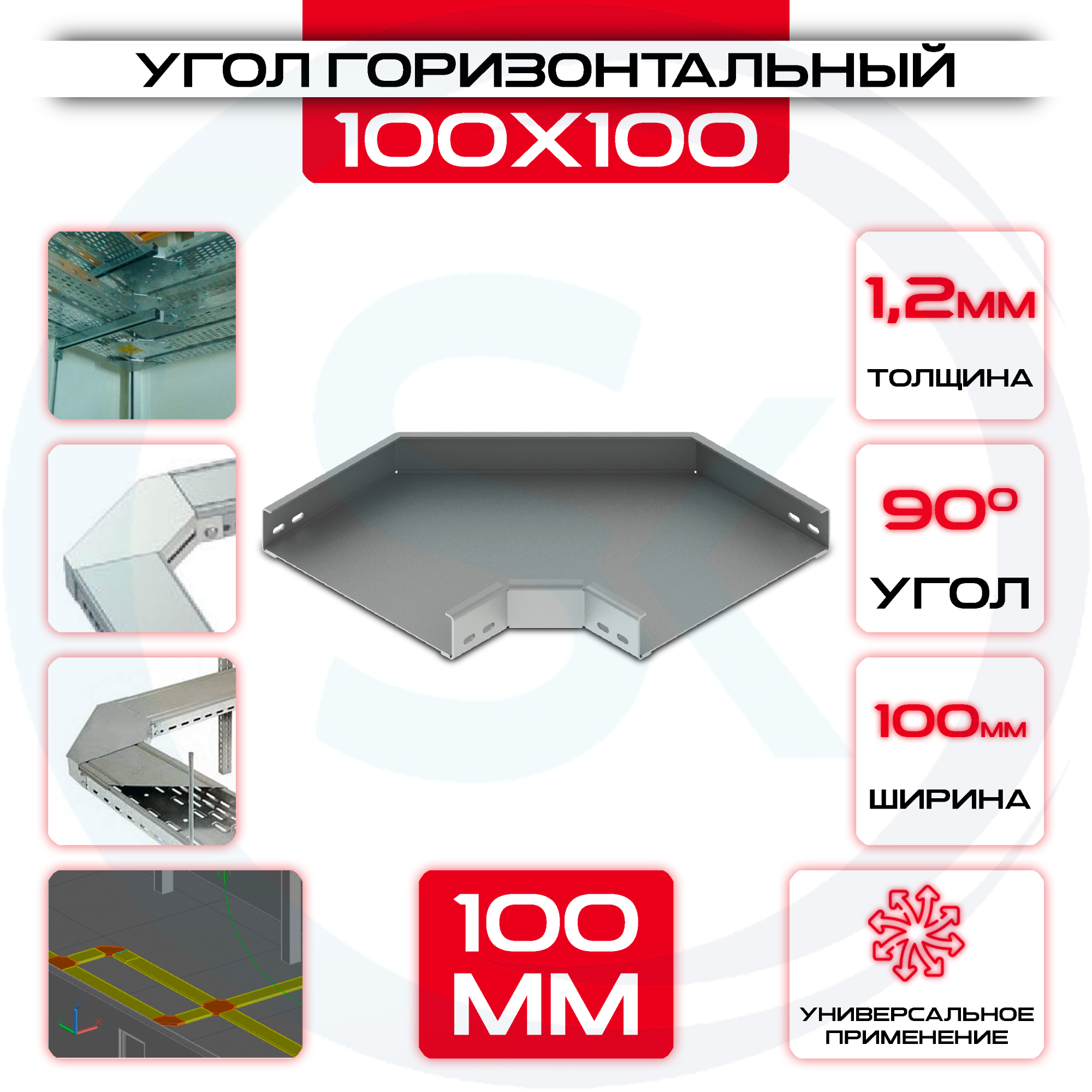 Угол горизонтальный 100x100мм, t=1,2мм, поворот 90° изготовлен из высококачественных материалов, обладает высокими прочностными характеристиками и долговечностью эксплуатации.