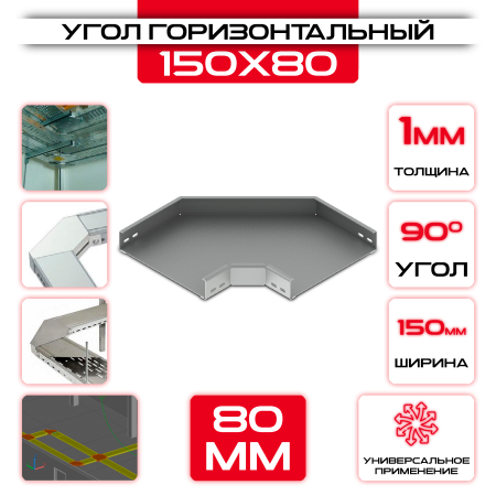 Угол горизонтальный 150x80мм, t=1мм, поворот 90° - качественная деталь для крепления и соединения элементов конструкции. Идеально подходит для строительства и ремонта.