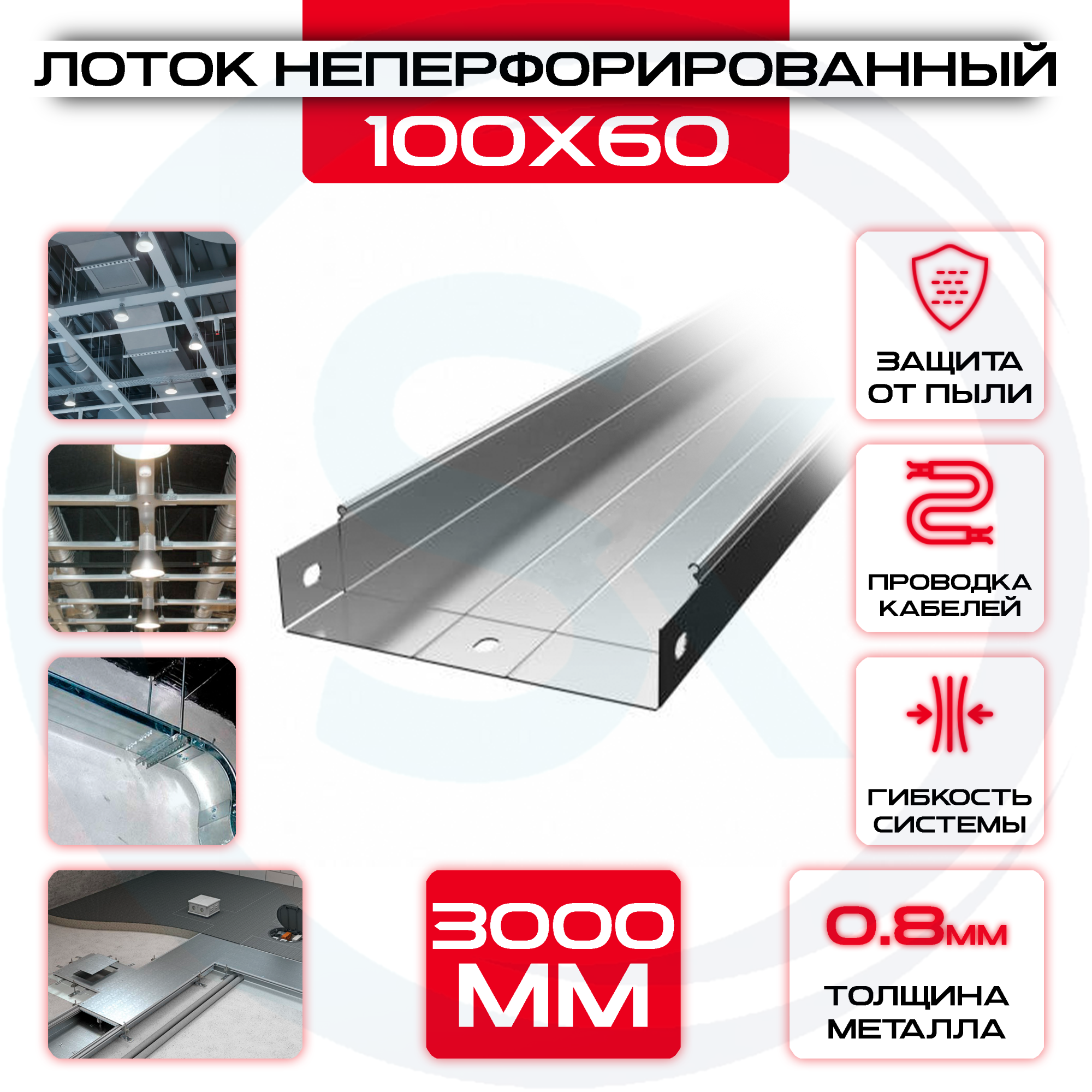 Лоток неперфорированный 100x60x3000 t = 0,8