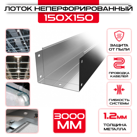 Лоток неперфорированный 150x150x3000 t = 1,2 мм