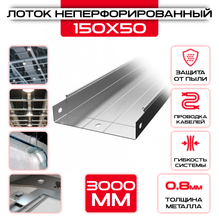 Лоток неперфорированный 150x50x3000 t = 0,8