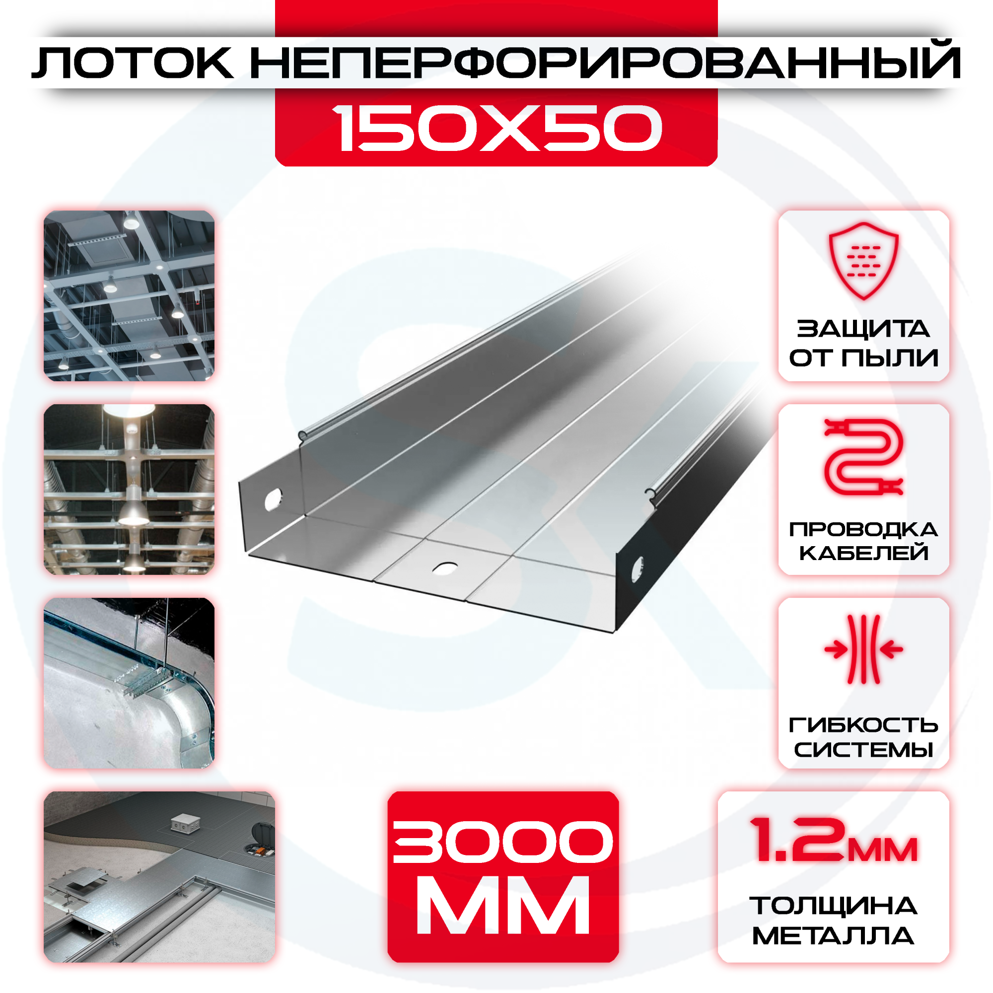 Лоток неперфорированный 150x50x3000 t = 1,2 мм