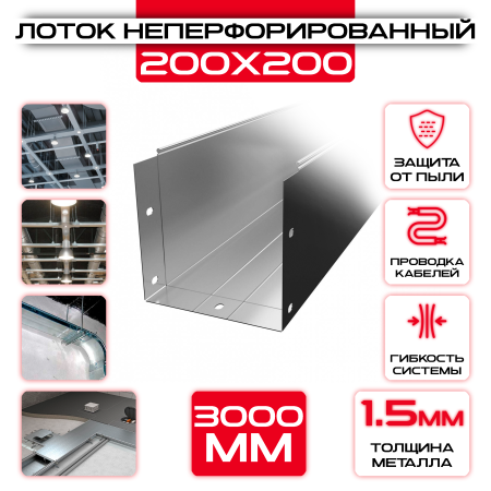 Лоток неперфорированный 200x200x3000 t = 1,5 мм