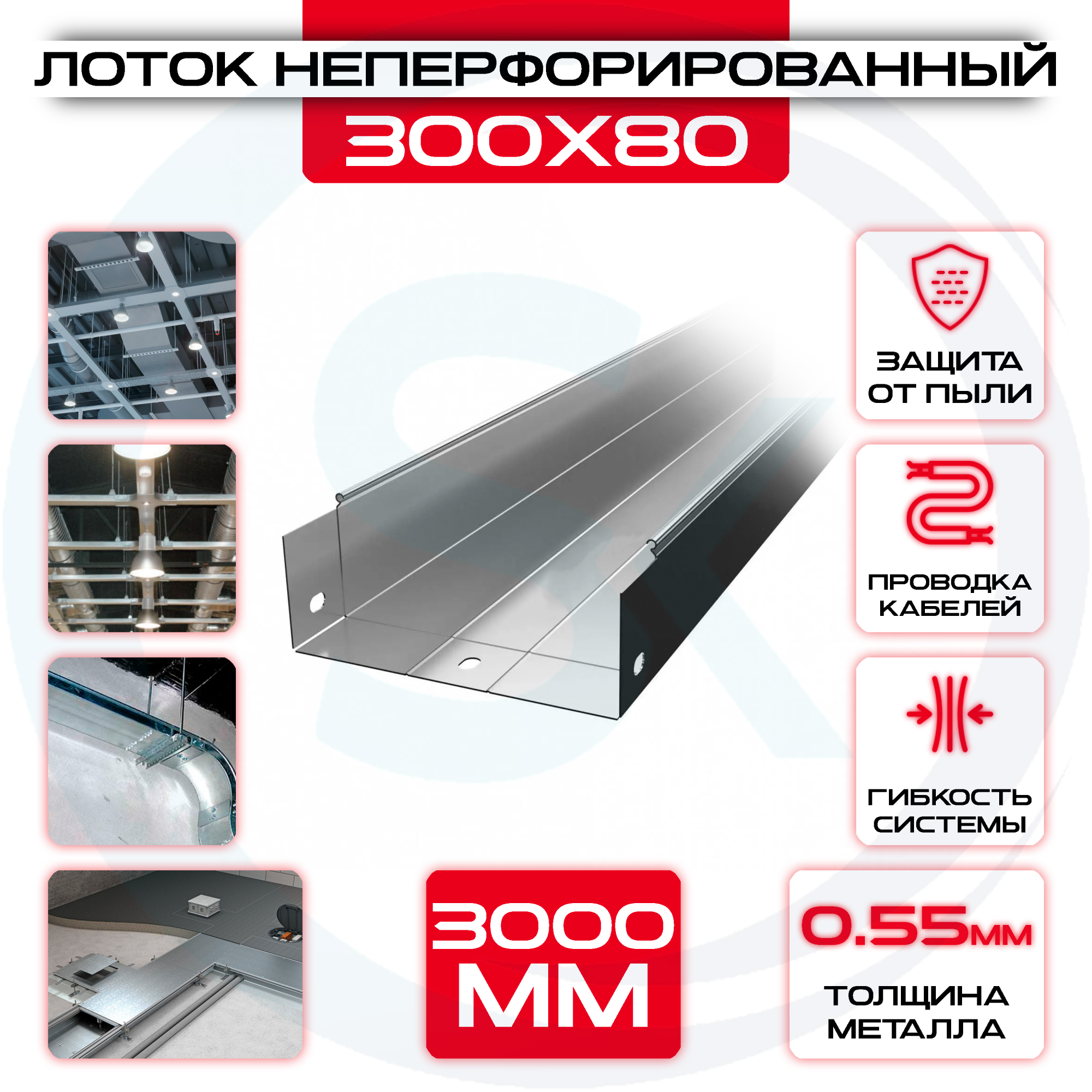 Лоток неперфорированный 300x80x3000 t = 0,55