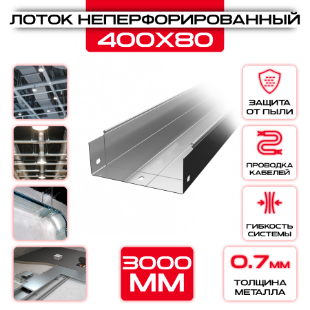 Лоток неперфорированный 400x80x3000 t = 0,7