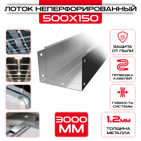 Лоток неперфорированный 500x150x3000 t = 1,2 мм