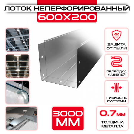 Лоток неперфорированный 600x200x3000 t = 0,7 - идеальное решение для организации кабельной системы. Изготовлен из высококачественного материала, обладает прочностью и долговечностью. Подходит для различных видов кабелей и проводов.