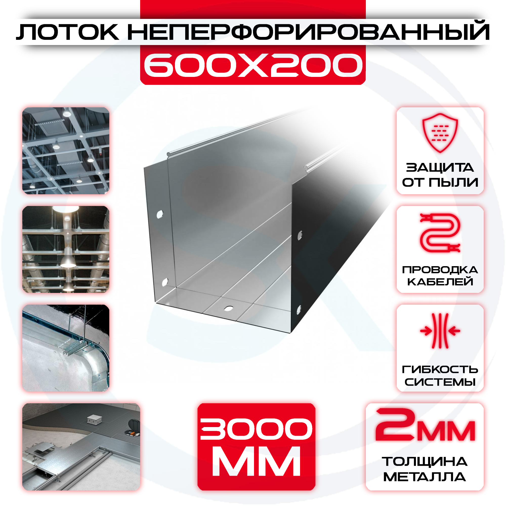 Лоток неперфорированный 600x200x3000 t = 2 мм