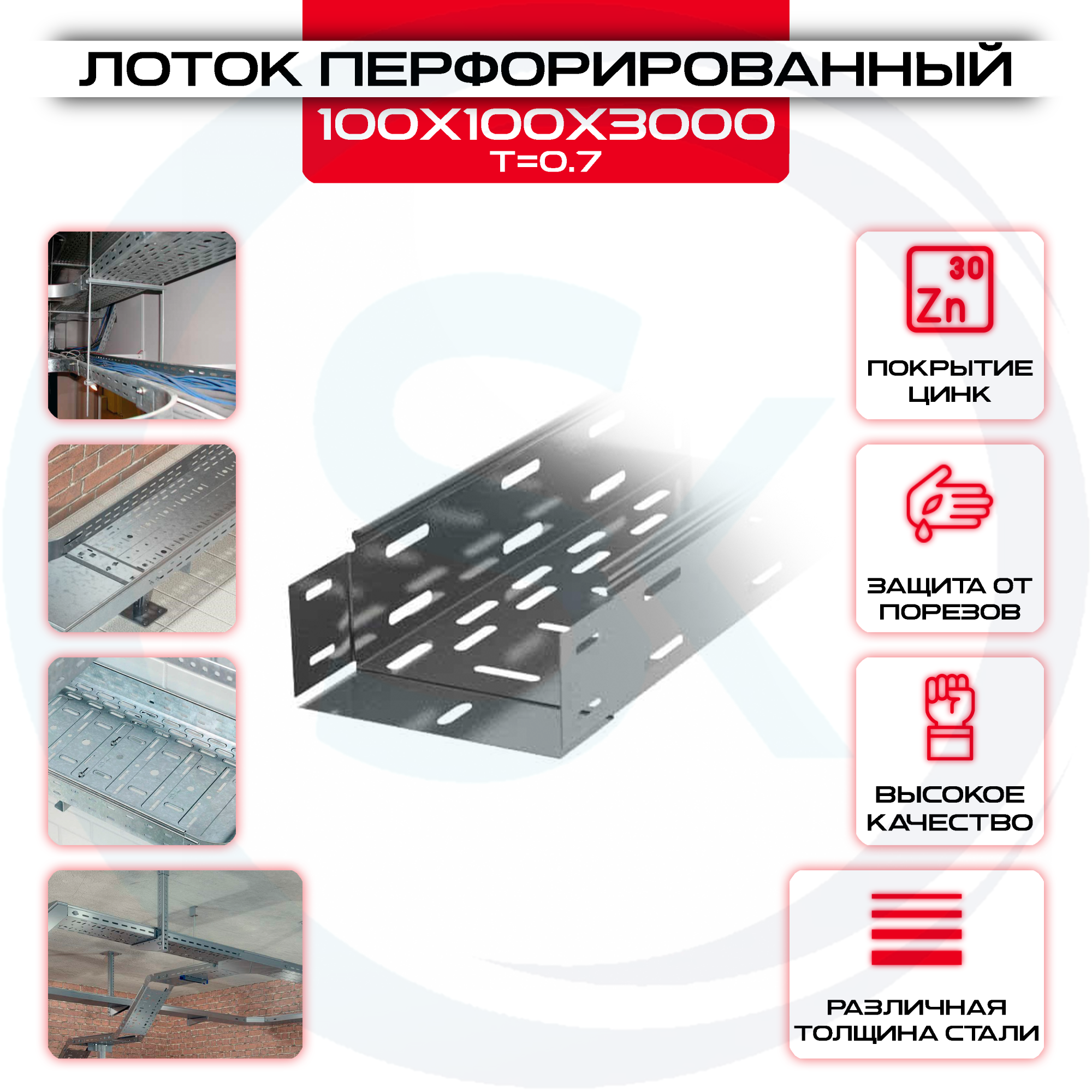Лоток перфорированный 100х100х3000мм, t=0,7 оцинкованный изготовлен из качественных материалов, обладает высокими прочностными характеристиками и долговечностью эксплуатации.