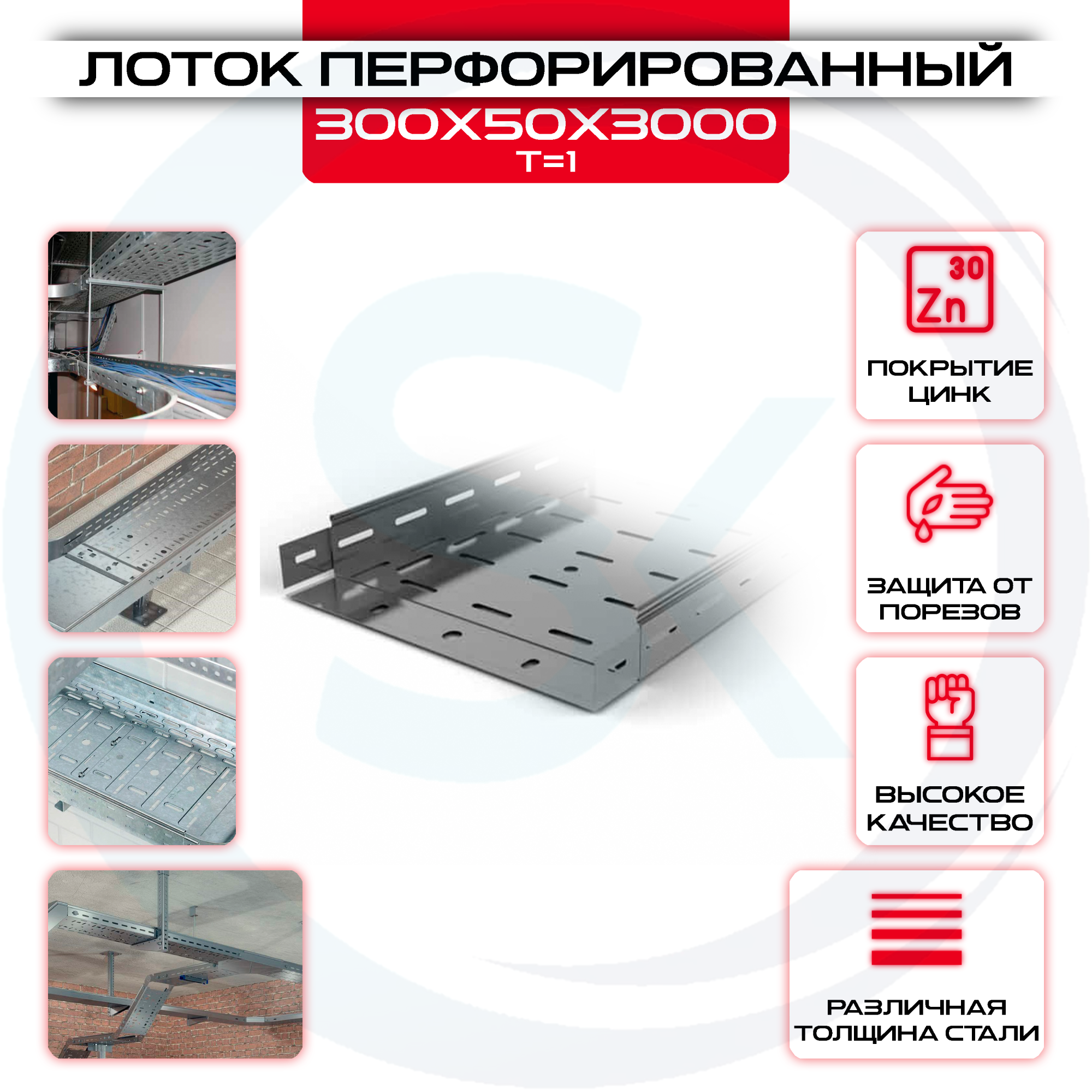 Лоток перфорированный 300х50х3000мм, t=1 оцинкованный изготовлен из качественных материалов, обладает высокими прочностными характеристиками и долговечностью эксплуатации.