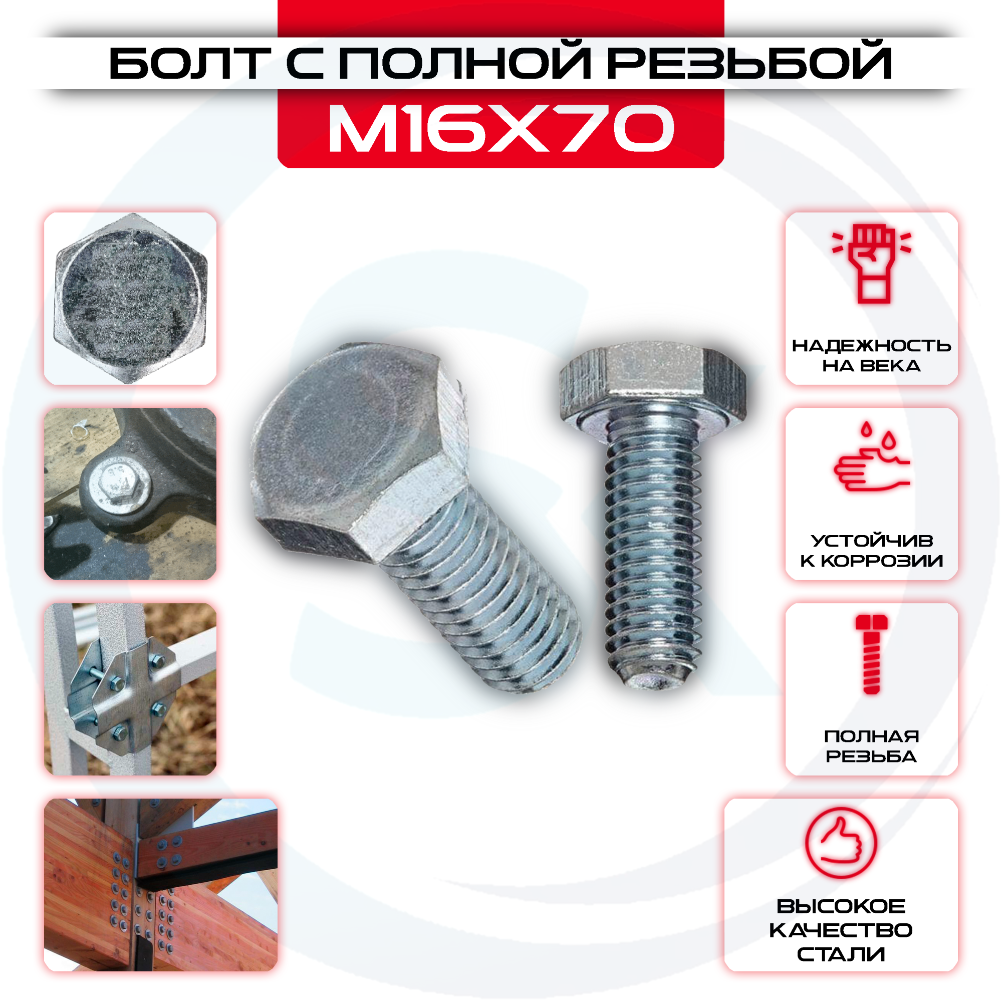 Болт с полной резьбой 16х70мм, цинк DIN 933 изготовлен из прочного материала, обеспечивающего надежную фиксацию.Надежная резьба позволяют увеличить срок службы конструкции, в котором Болт с полной резьбой 16х70мм, цинк DIN 933 служит креплением. Еще одним важным преимуществом является небольшой размер – благодаря этому он будет практически незаметен, что позволит сделать любой дизайн как в помещении, так и на улице.