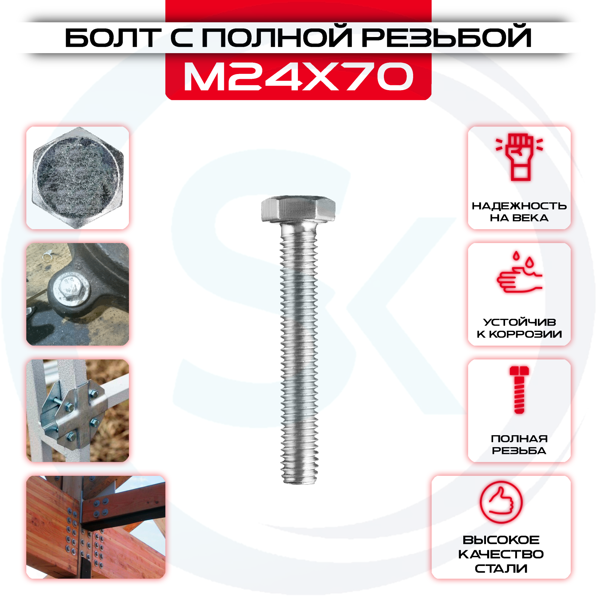 Болт с полной резьбой 24х70мм, DIN 933 изготовлен из прочного материала, обеспечивающего надежную фиксацию.Надежная резьба позволяют увеличить срок службы конструкции, в котором Болт с полной резьбой 24х70мм, DIN 933 служит креплением. Вторым его преимуществом является небольшой размер – благодаря этому он будет практически незаметен, что позволит сделать любой дизайн как в помещении, так и на улице.