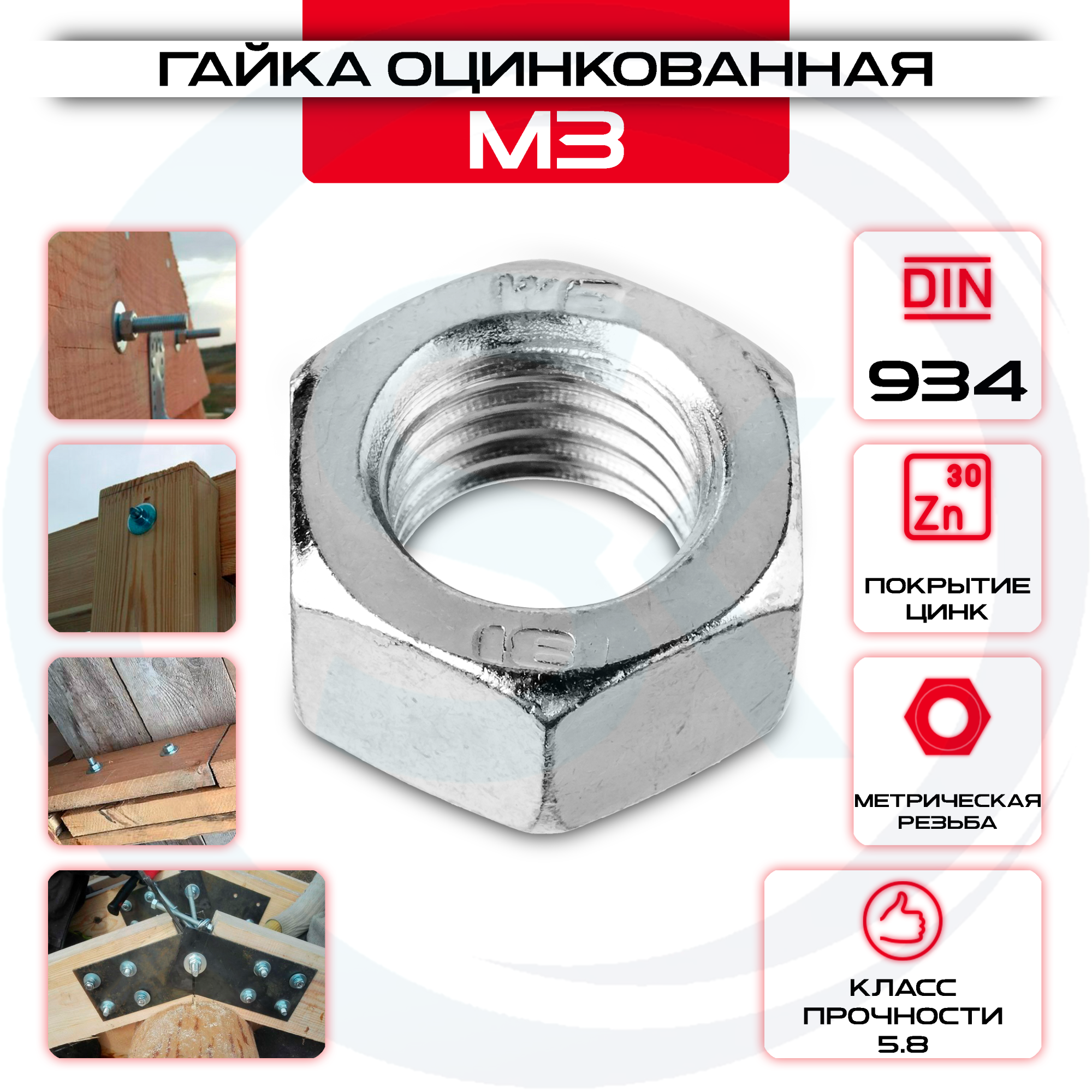 Гайка оцинкованная М3, DIN 934, шестигранная, кг