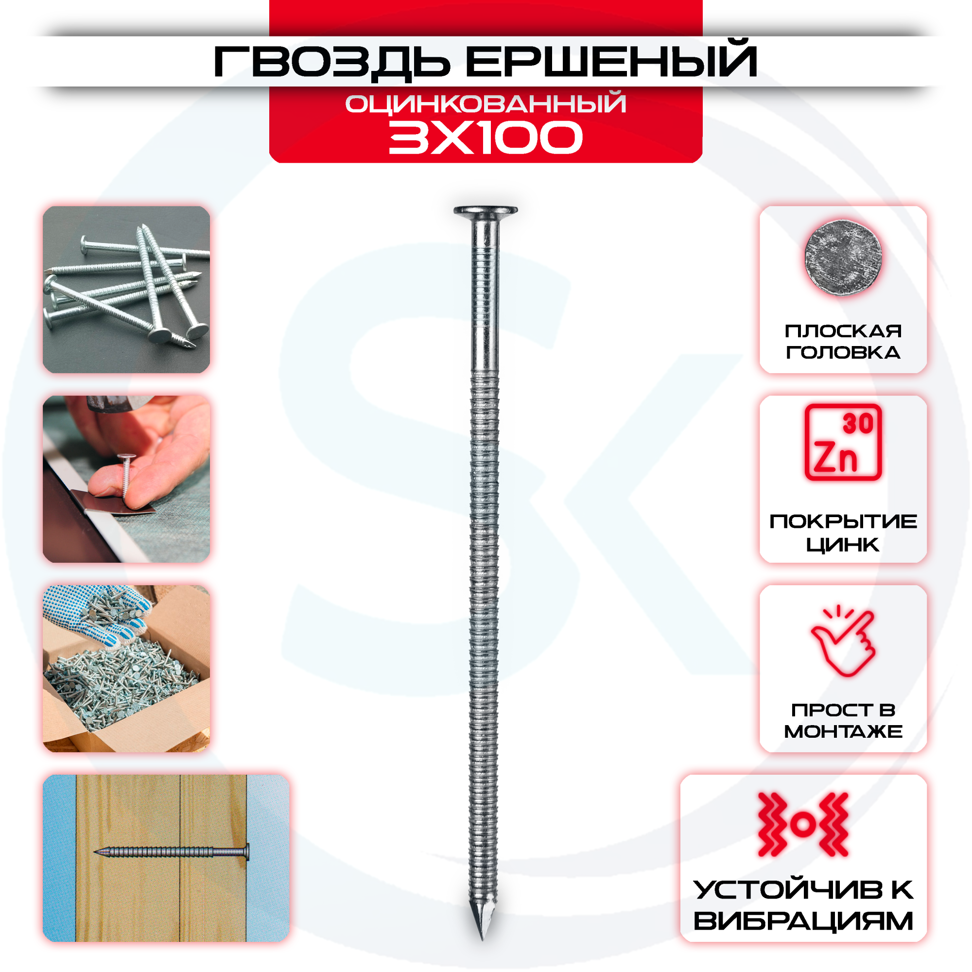Гвоздь 3х100мм, ершеный оцинкованный
