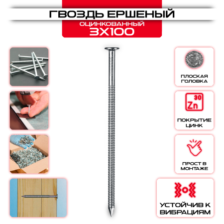 Гвоздь 3х100мм, ершеный оцинкованный изготовлен из прочного материала, обеспечивающего надежную фиксацию.Качественные материалы позволяют увеличить срок службы конструкции, в котором Гвоздь 3х100мм, ершеный оцинкованный служит креплением. Вторым его преимуществом является небольшой размер – благодаря этому он будет практически незаметен, что позволит сделать любой дизайн как в помещении, так и на улице.