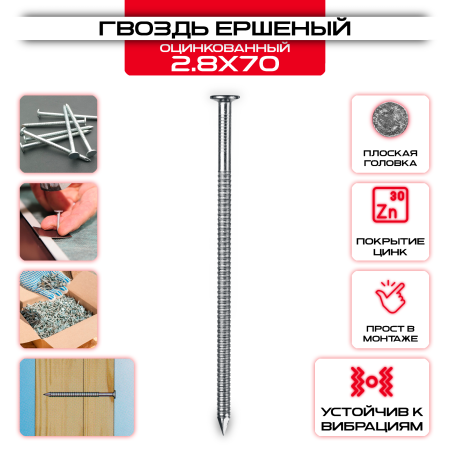 Гвоздь 2,8х70мм, ершеный оцинкованный