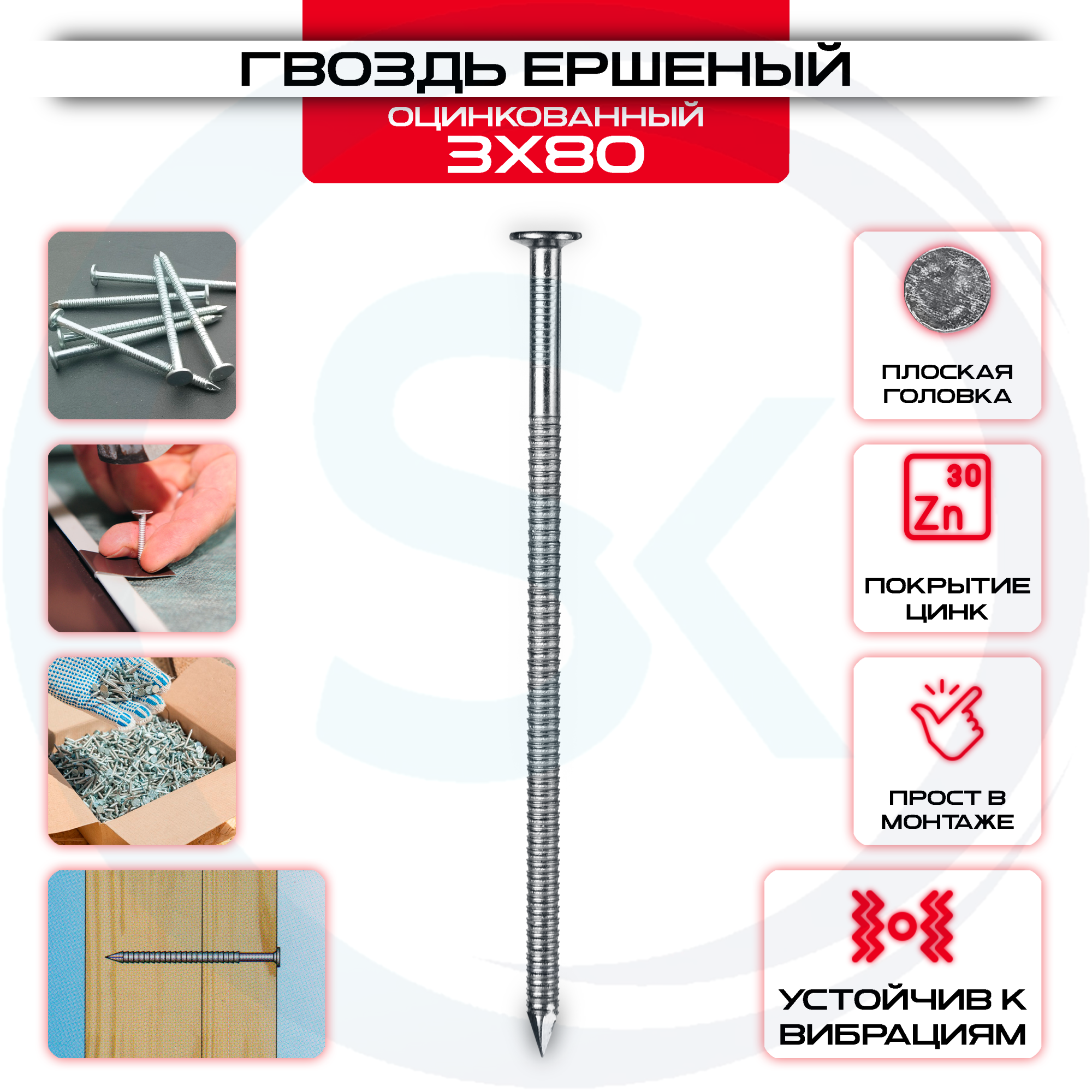 Гвоздь 3х80мм, ершеный оцинкованный - это прочный и надежный строительный элемент, предназначенный для крепления различных материалов. Гвоздь имеет длину 80 мм, что позволяет использовать его для крепления тонких и средней толщины материалов. Оцинкованное покрытие защищает гвоздь от коррозии, повышая его долговечность. Ершеная поверхность гвоздя обеспечивает надежное сцепление с материалом, предотвращая выскальзывание. Гвоздь 3х80мм, ершеный оцинкованный является незаменимым инструментом для строительных работ и ремонта, обеспечивая прочное и надежное соединение элементов.