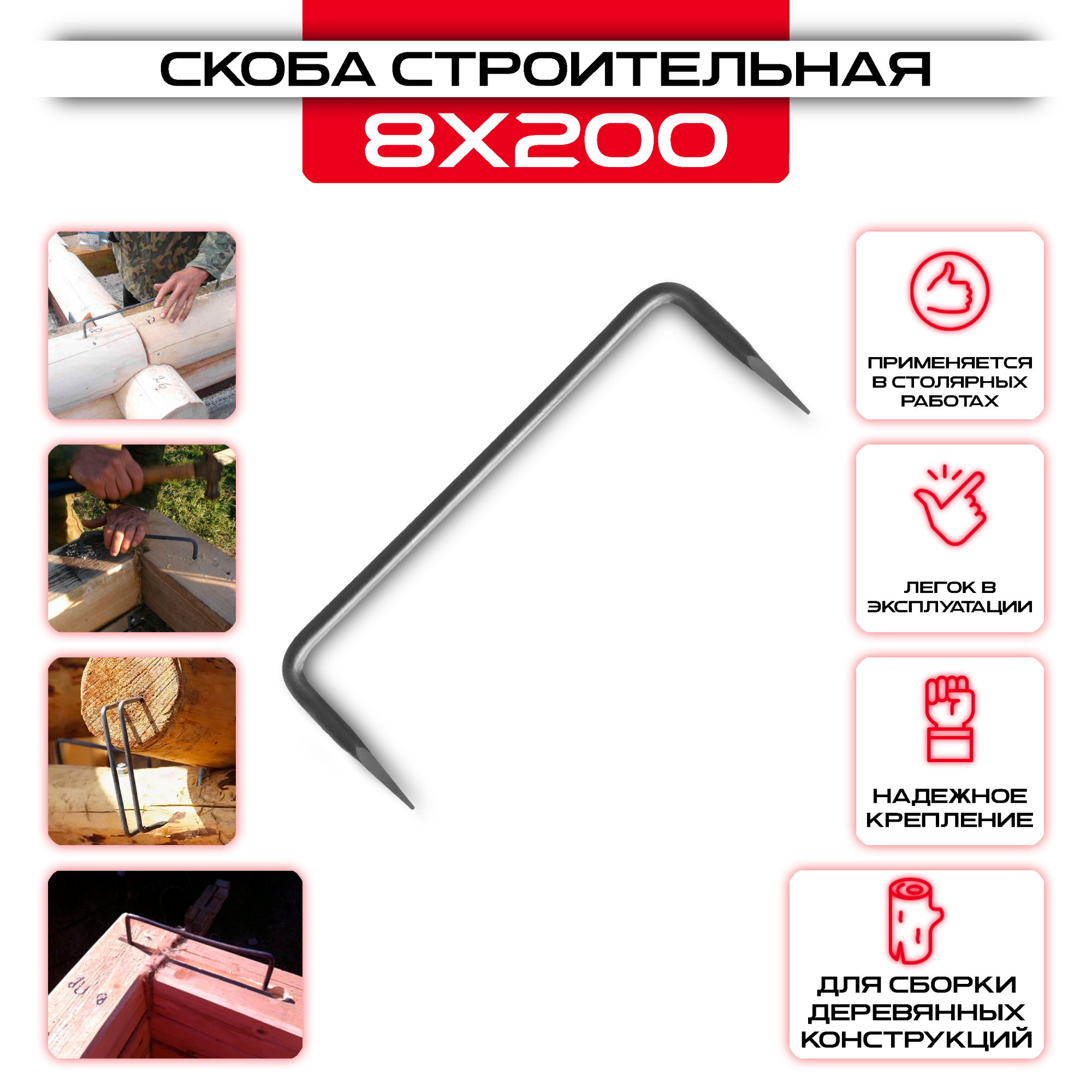 Строительная скоба гладкая 8х200мм