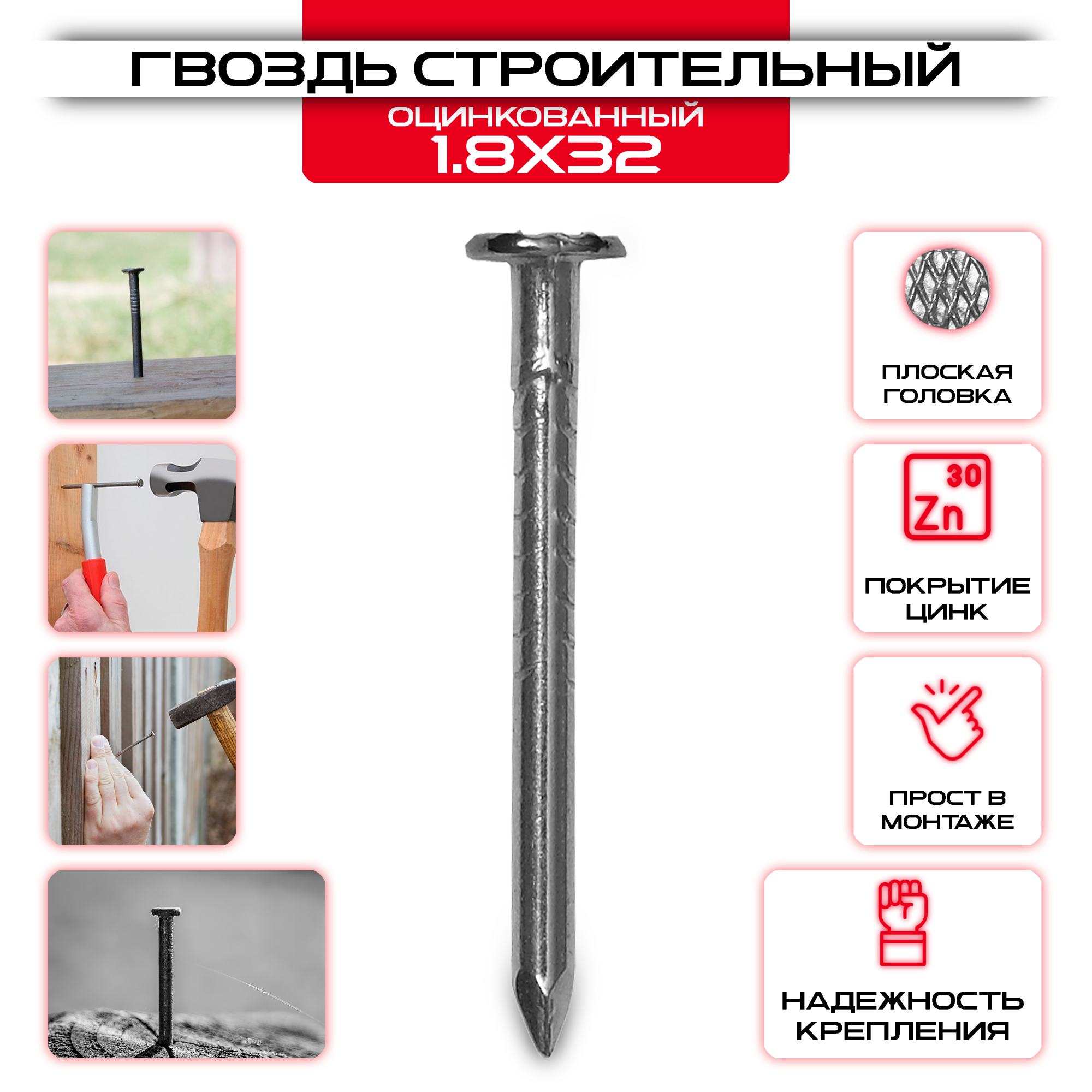 Гвоздь строительный оцинкованный 1,8х32мм