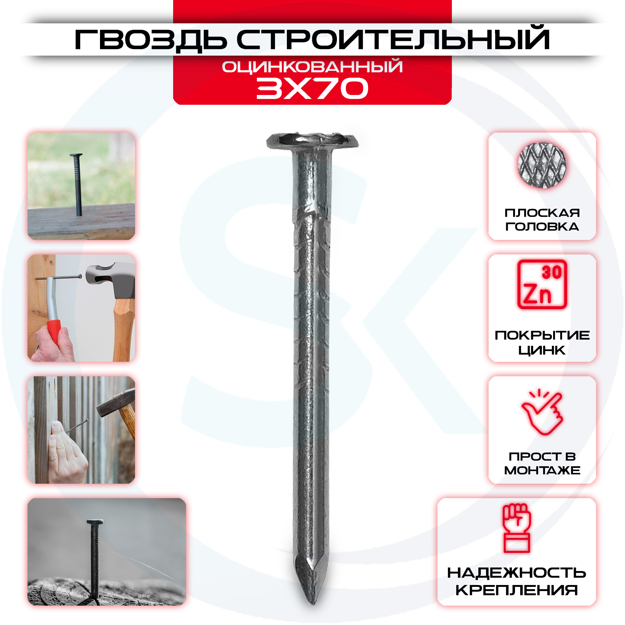 Гвозди строительные оцинкованные 3х70мм изготовлен из прочного материала, обеспечивающего надежную фиксацию.Качественные материалы позволяют увеличить срок службы конструкции, в котором Гвозди строительные оцинкованные 3х70мм служит креплением. Вторым его преимуществом является небольшой размер – благодаря этому он будет практически незаметен, что позволит сделать любой дизайн как в помещении, так и на улице.