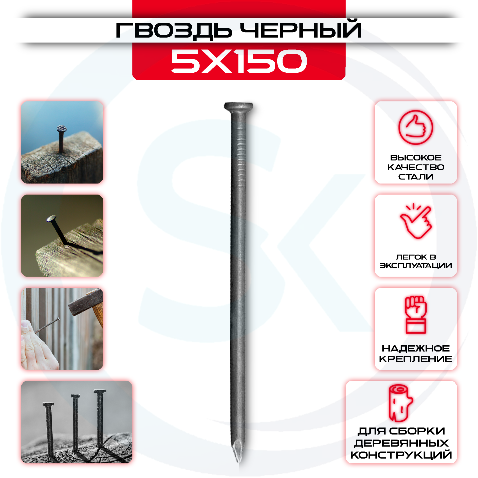 Гвозди строительные черные 5x150мм изготовлен из прочного материала, обеспечивающего надежную фиксацию.Надежная резьба позволяют увеличить срок службы конструкции, в котором Гвозди строительные черные 5x150мм служит креплением. Вторым его преимуществом является небольшой размер – благодаря этому он будет практически незаметен, что позволит сделать любой дизайн как в помещении, так и на улице.