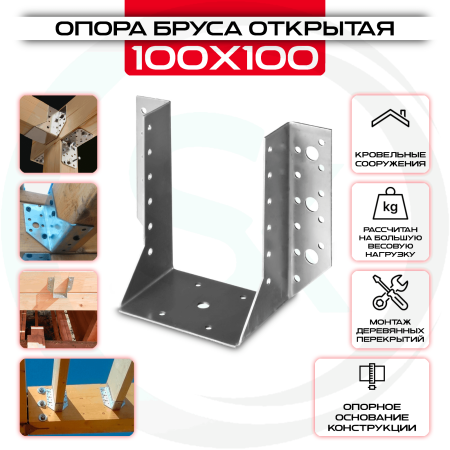 Опора бруса 100х100мм, открытая OBR R - это надежное и качественное решение для установки бруса. Она обеспечивает прочную опору и защиту от деформации, позволяя долго сохранять качество и надежность конструкции.