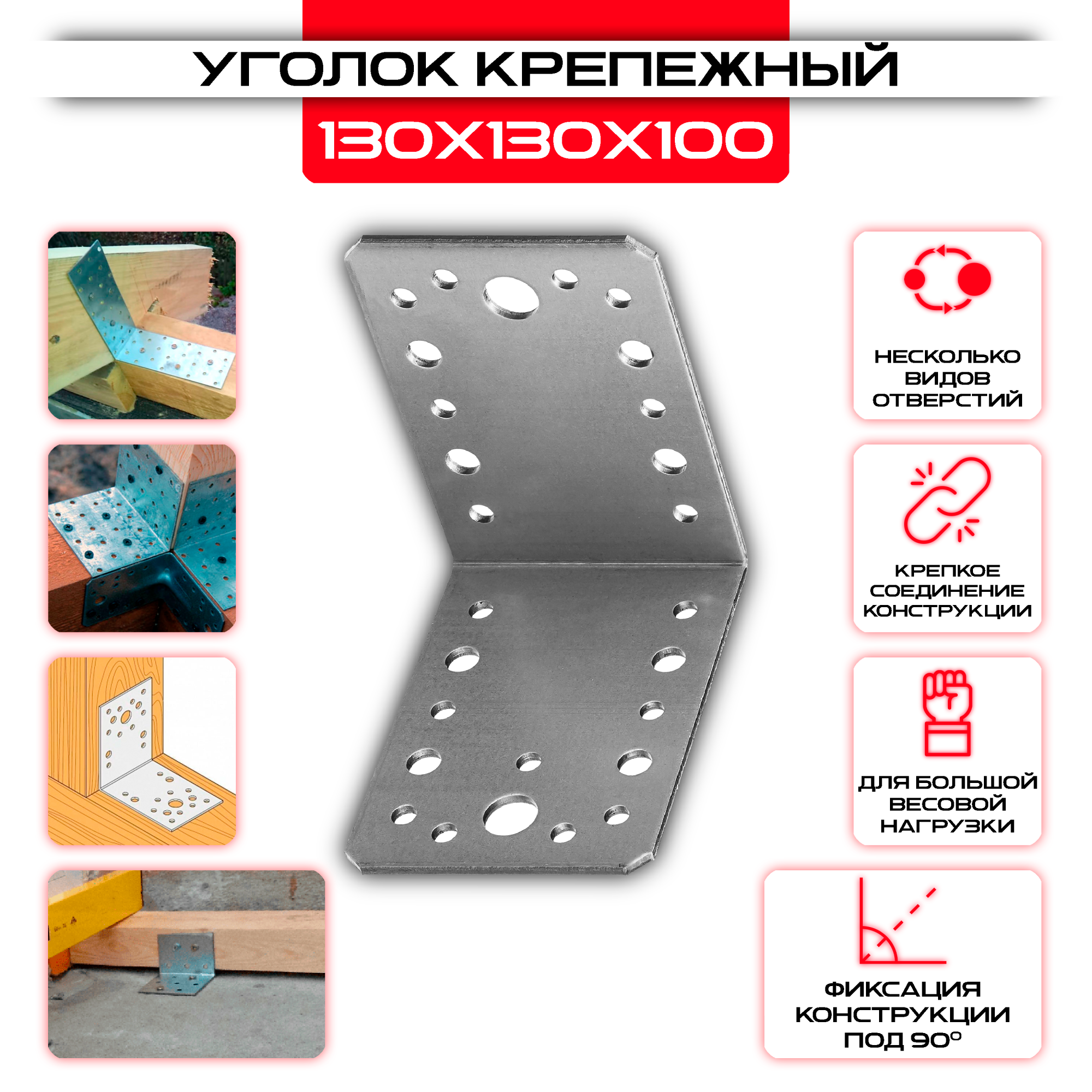 Уголок крепежный оцинкованный 130х130х100мм KU, толщина 2мм - надежное крепление конструкций. Изготовлен из оцинкованной стали, что обеспечивает защиту от коррозии. Идеально подходит для использования в строительстве и ремонте.