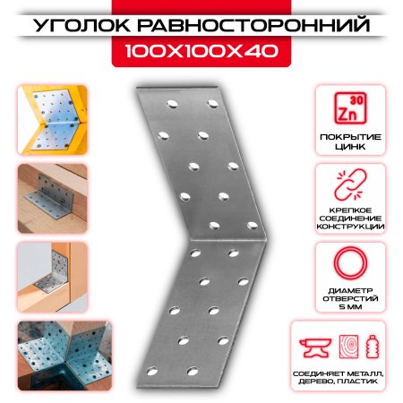 Крепежный уголок 100х100х40мм равносторонний KUR, толщина 2мм