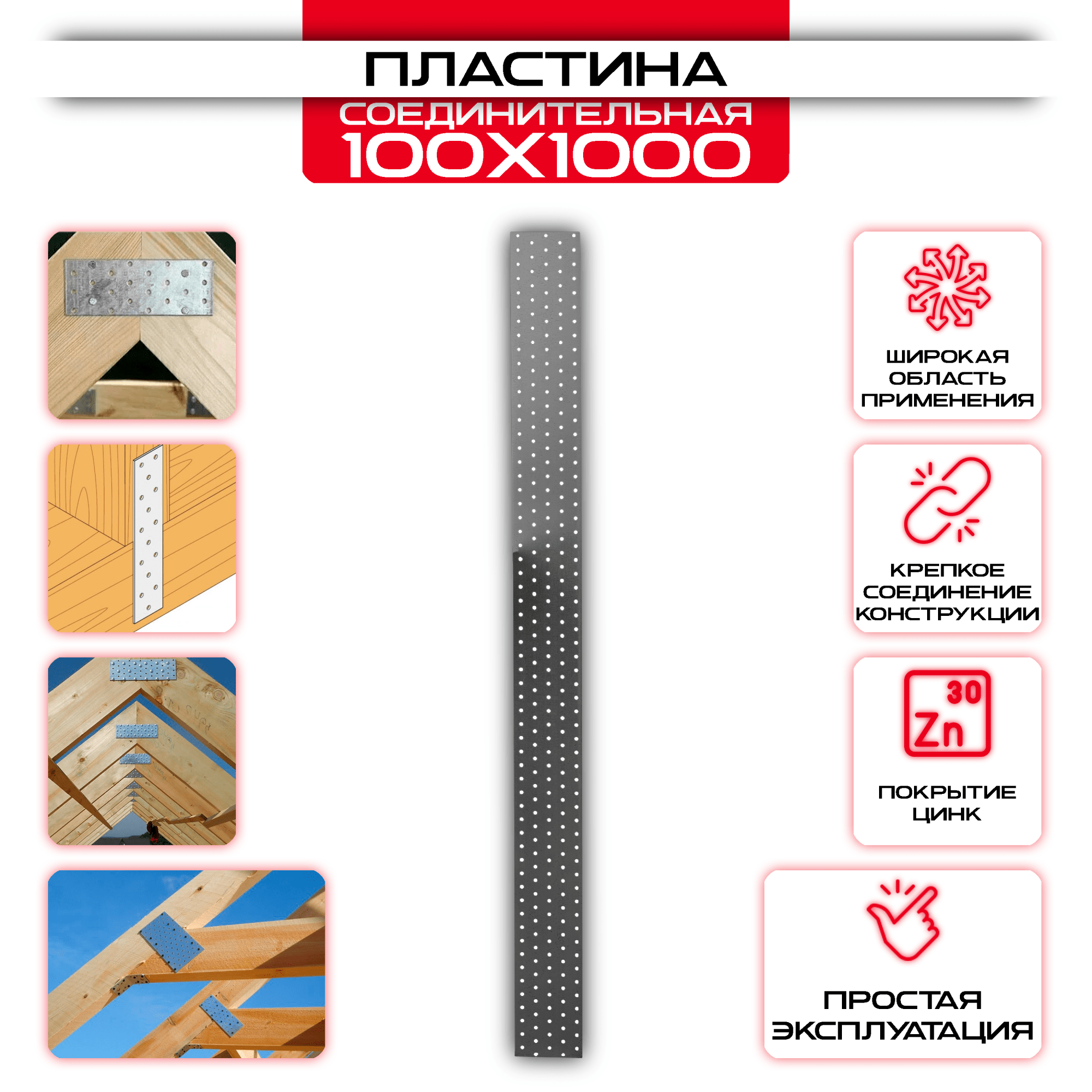 Пластина соединительная PS 100х1000мм, толщина 2 мм