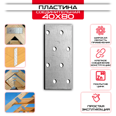 Пластина соединительная PS 40х80мм, толщина 2 мм