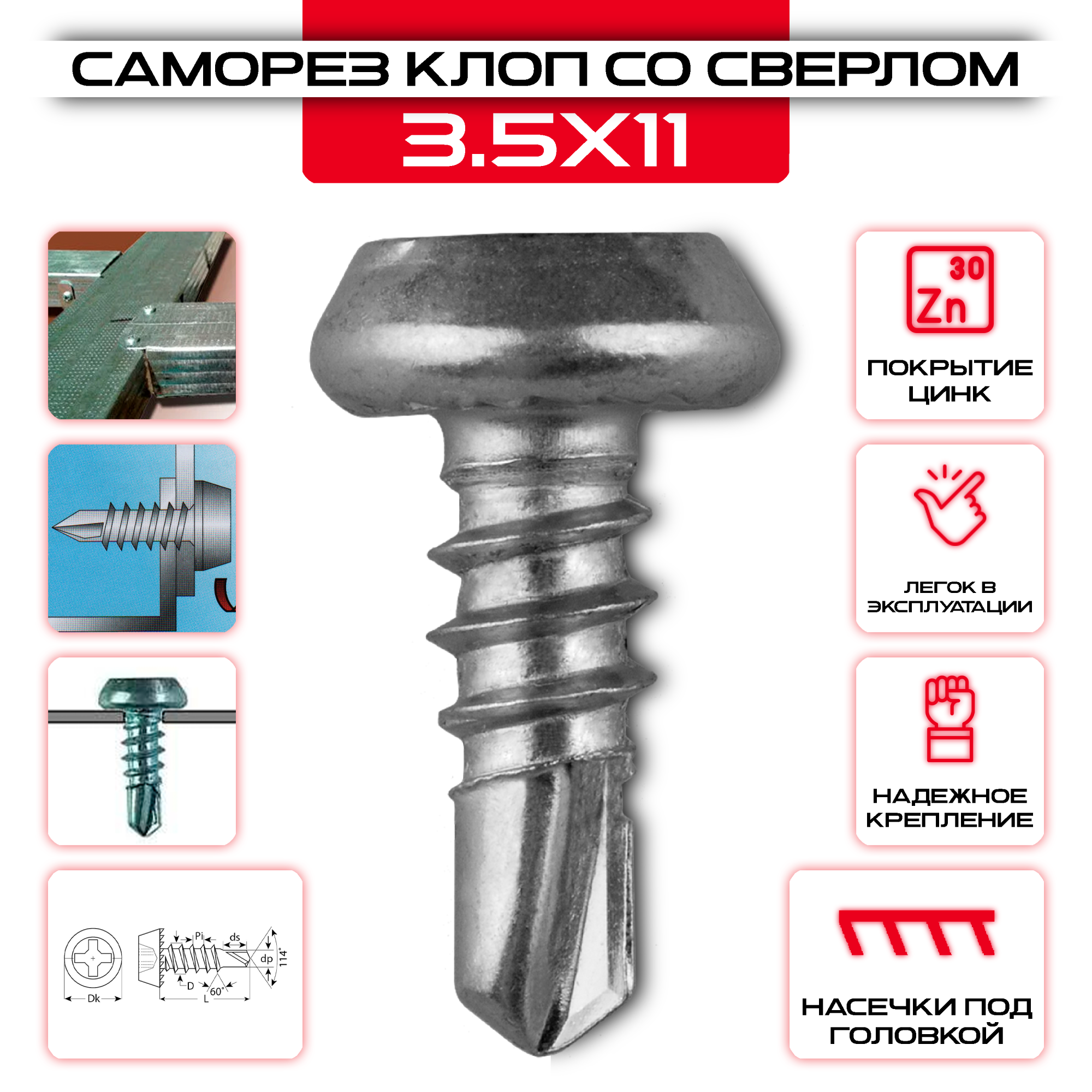 Саморез клоп 3,5х11мм, со сверлом оцинкованный - надежное крепление для деревянных конструкций