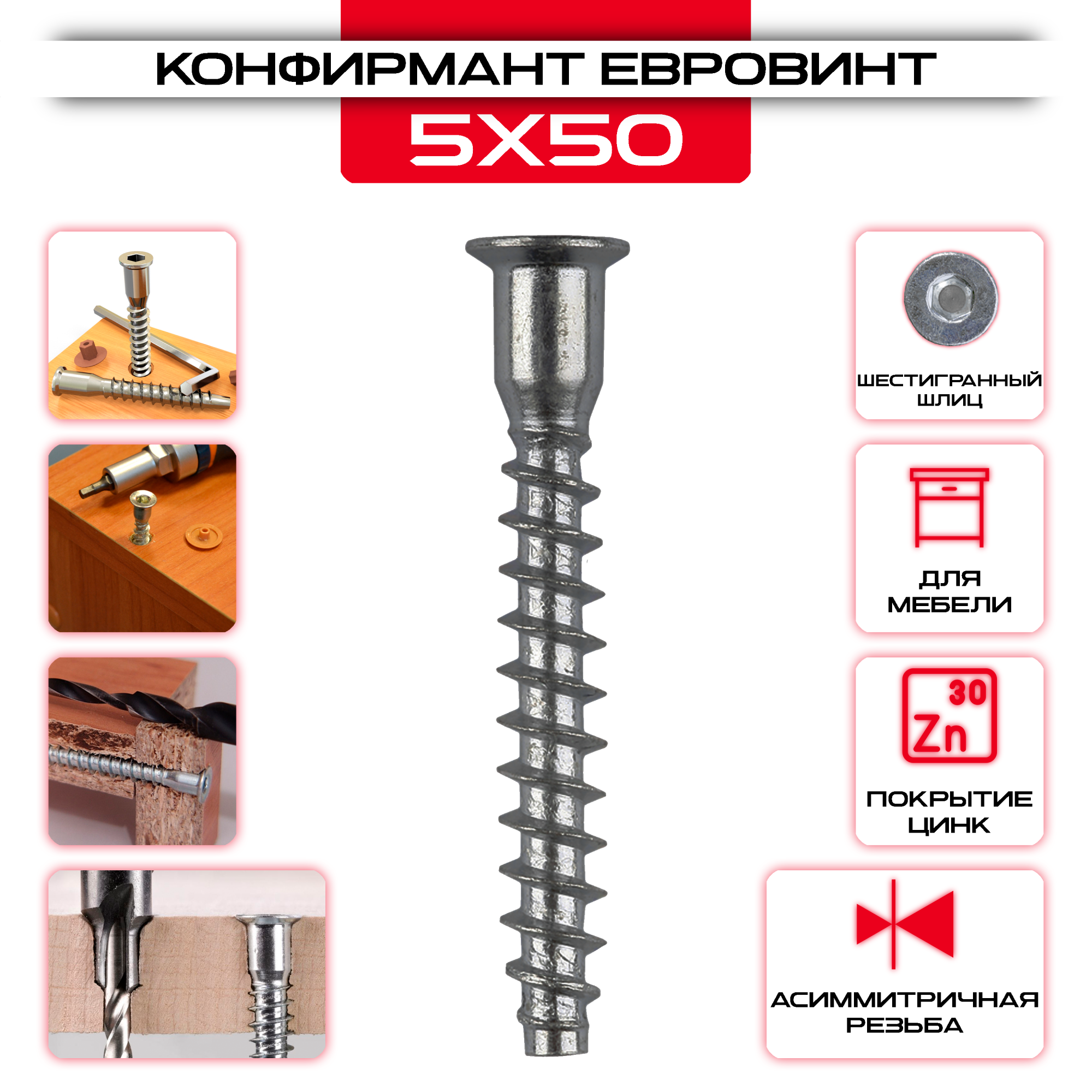 Винт конфирмат 5х50 еврошуруп, евровинт изготовлен из прочного материала, обеспечивающего надежную фиксацию.Высокая прочность позволяют увеличить срок службы конструкции, в котором Винт конфирмат 5х50 еврошуруп, евровинт служит креплением. Вторым его преимуществом является небольшой размер – благодаря этому он будет практически незаметен, что позволит сделать любой дизайн как в помещении, так и на улице.