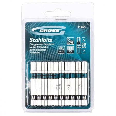 Набор бит HEX 6 х 50, сталь S2, 10 шт. Gross