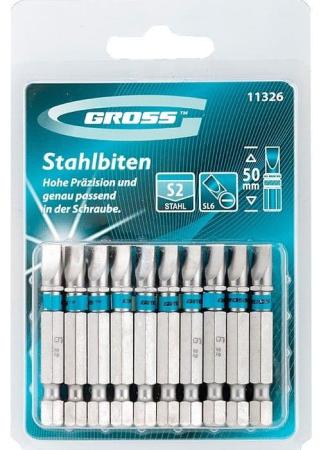 Набор бит SL6 х 50, сталь S2, 10 шт. Gross