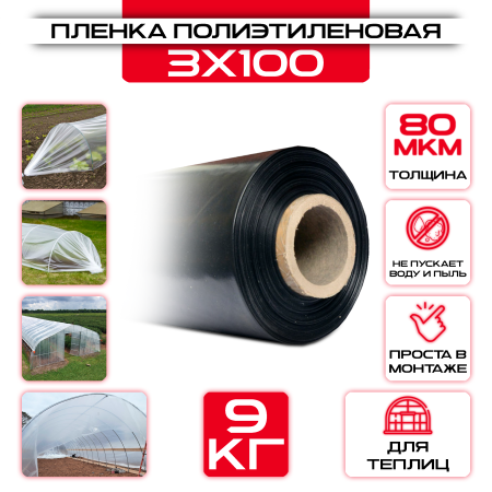 Пленка полиэтиленовая вторичная 3х100м. 80мкм идеально подходит для ремонта и монтажа, а также для производства изделий из различных материалов.