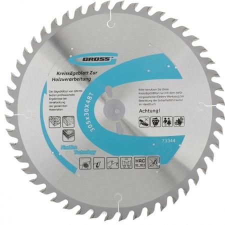 Пильный диск по дереву 305 x 30 x 48Т Gross идеально подходит для ремонта и монтажа, а также для производства изделий из различных материалов.